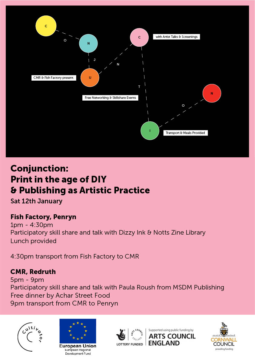 Conjunction Event from The Fish Factory, Penryn and CMR Project Space, Redruth organised by Alice Mahoney and Rose Hatcher. CMR Cornwall Media Resource, Redruth